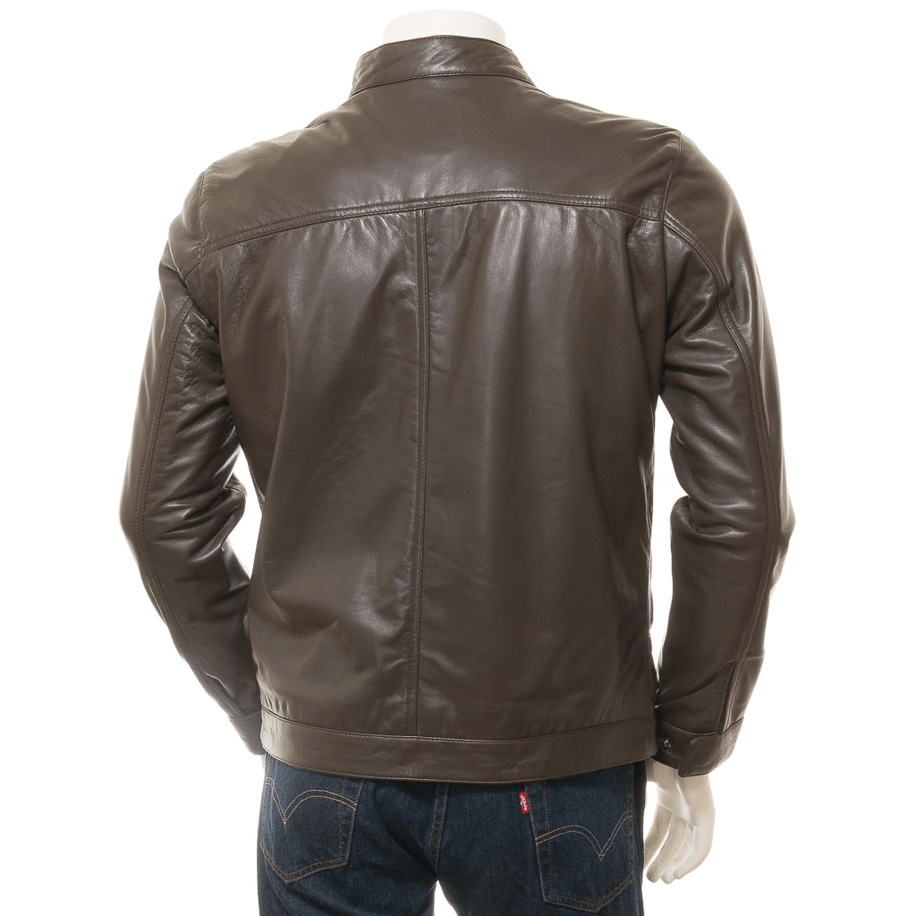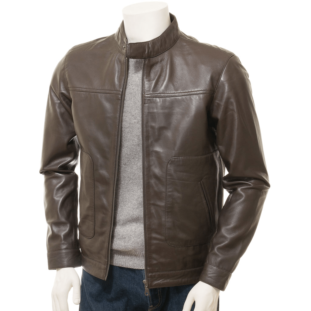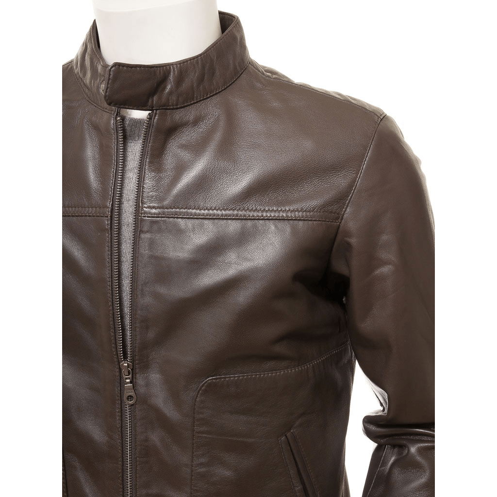 MEN BROWN LEATHER BIKER JACKET BOLTON - Vero.com