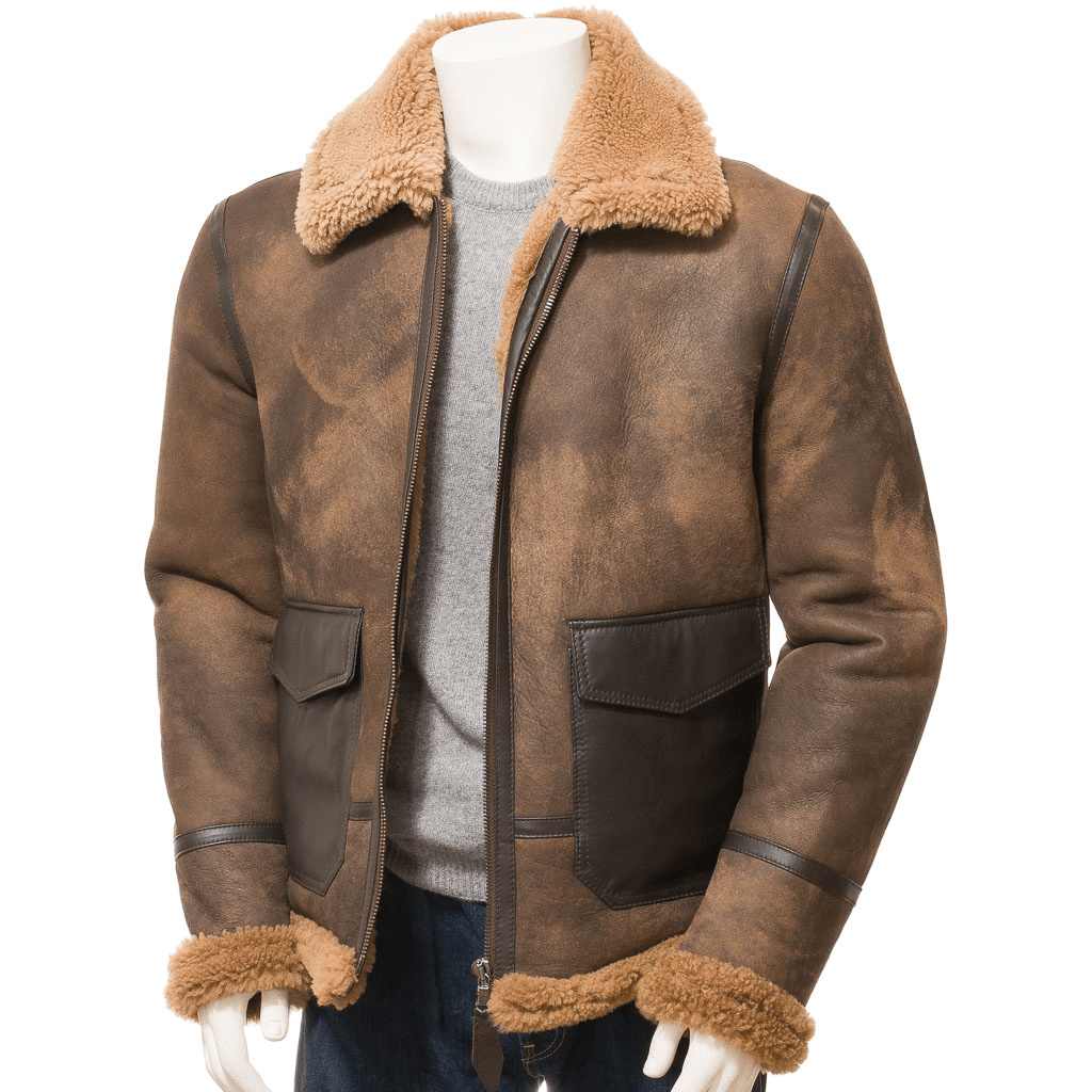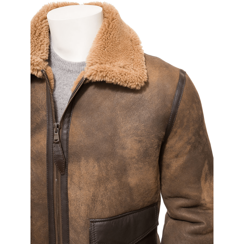 MEN BROWN SHEEPSKIN SHEARLING JACKET FLOYD