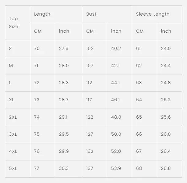 Sizes: Wide size options from S to 5XL to ensure the perfect fit for every body type.